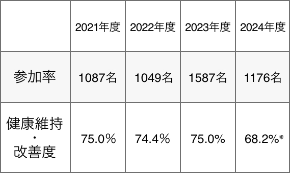 ※健康維持・改善率は、定期健康診断の判定が改善した者の数値で算出しているが、2024年度は判定基準の見直しを行い、基準を厳格化。